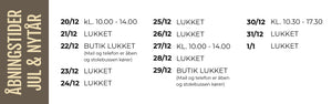 ÅBNINGSTIDER JUL OG NYTÅR